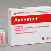 Артикул: 104467Полное название:Акинетон р-р для в/в и в/м введ. 5 мг/мл 1 мл №5 ампулы, Десма ГмбХ, произведено Сиртон Фармасьютикалс С.п.А.