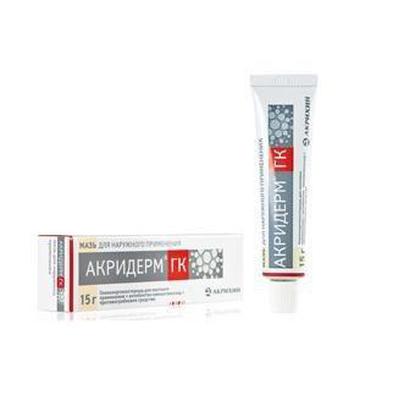 Артикул: 104490Полное название:Акридерм ГК мазь д/наружн. прим. 0.05%+0.1%+1% 15 г №1, Акрихин АО