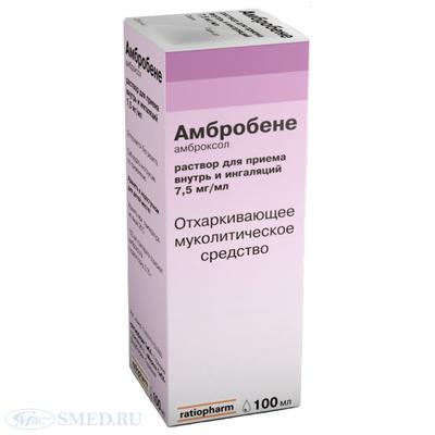 Артикул: 244Полное название:Амбробене р-р д/приема внутрь и ингал. 7.5 мг/мл 100 мл №1 флакон-капельница, Меркле ГмбХ