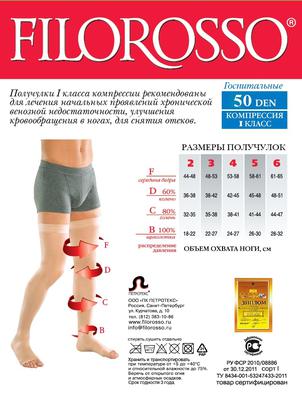 Артикул: 344107Полное название:Чулки компрессионные филороссо р. 2 (42-46) 50 den госпитальные 1 класс компрессии мужские черные, петротекс