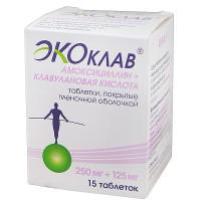 Артикул: 121553Полное название:Экоклав табл. п/о пленочной 250 мг+125 мг №15, АВВА РУС ОАО