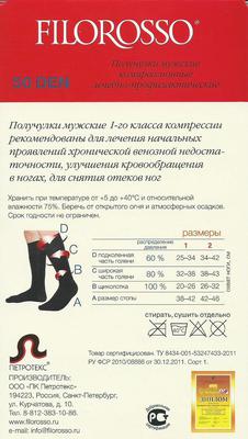 Артикул: 339186Полное название:Гольфы мужские лечебно-профилактические филороссо р. 2 (42-46) 50 den пунктура 1 класс компрессии массажный след черные, петротекс