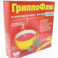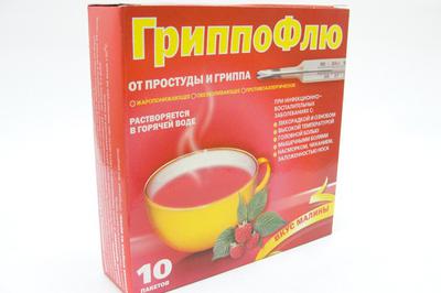 Артикул: 41967Полное название:ГриппоФлю от простуды и гриппа пор. д/р-ра д/приема внутрь 13 г №10 малин. пакетики, Марбиофарм ОАО