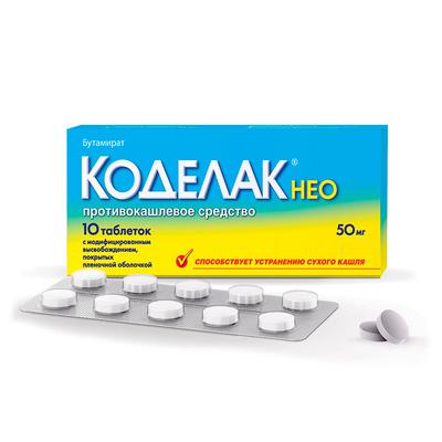 Артикул: 221816Полное название:Коделак Нео табл. с пролонг. высвоб. п/о пленочной 50 мг №10, Фармстандарт-УфаВИТА ОАО / Отисифарм Про АО