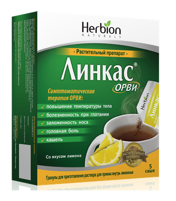Артикул: 243667Полное название:Линкас ОРВИ гран. д/р-ра д/приема внутрь 5.6 г №5 лимон саше, Хербион Пакистан Пвт. Лтд