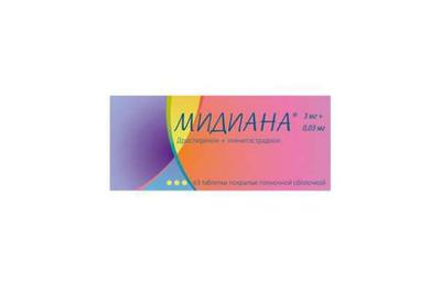 Артикул: 182500Полное название:Мидиана табл. п/о пленочной 3 мг+0.03 мг №63, Гедеон Рихтер ОАО