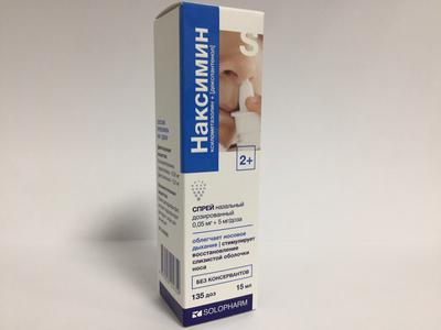Артикул: 415698Полное название:Наксимин спрей наз. дозир. 0.05 мг+5 мг/доза 15 мл (135 доз) №1 флакон, Гротекс ООО