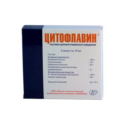Артикул: 58157Полное название:Цитофлавин р-р для в/в введ. 10 мл №5 ампулы, Полисан НТФФ ООО