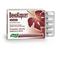 Артикул: 176131Полное название:Венокорсет капс. 250 мг №60 с экстрактом листьев винограда, Эвалар ЗАО