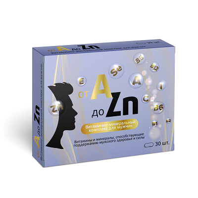 Артикул: 594445Полное название:Витаминный комплекс A-Zn для мужчин Витамир табл. п/о 900 мг №30 БАД (от А до цинка A-Zn), Квадрат-С ООО