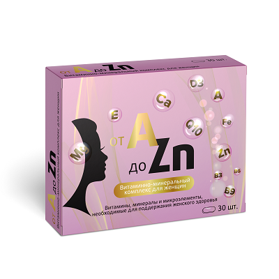 Артикул: 546863Полное название:Витаминный комплекс A-Zn для женщин Витамир табл. п/о 1100 мг №30 БАД (от А до цинка A-Zn), Квадрат-С ОООУсловия хранения: 474471