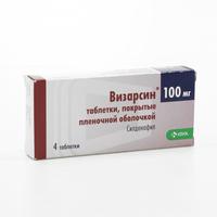 Артикул: 210351Полное название:Визарсин табл. п/о пленочной 100 мг №4, КРКА д.д. Ново Место