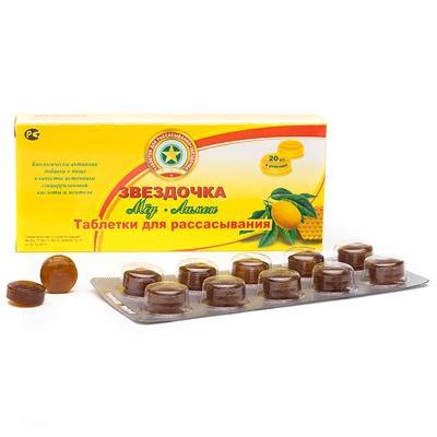 Артикул: 198889Полное название:Звездочка табл. д/рассас. 2.4 г №20 мед и лимон, Мекофар Кемикал-Фармасьютикал Джойнт Сток Компани