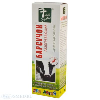 Артикул: 135678Полное название:7 нот здоровья барсучок массажный разогревающий Бальзам для детей 50 мл, Скимед ООО, произведено Корвет Фарма