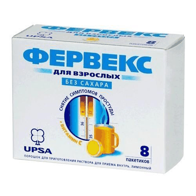 Артикул: 41867Полное название:Фервекс пор. д/р-ра д/приема внутрь 500 мг+25 мг+200 мг 4.95 г №8 лимонный (без сахара) пакетики, Упса САС